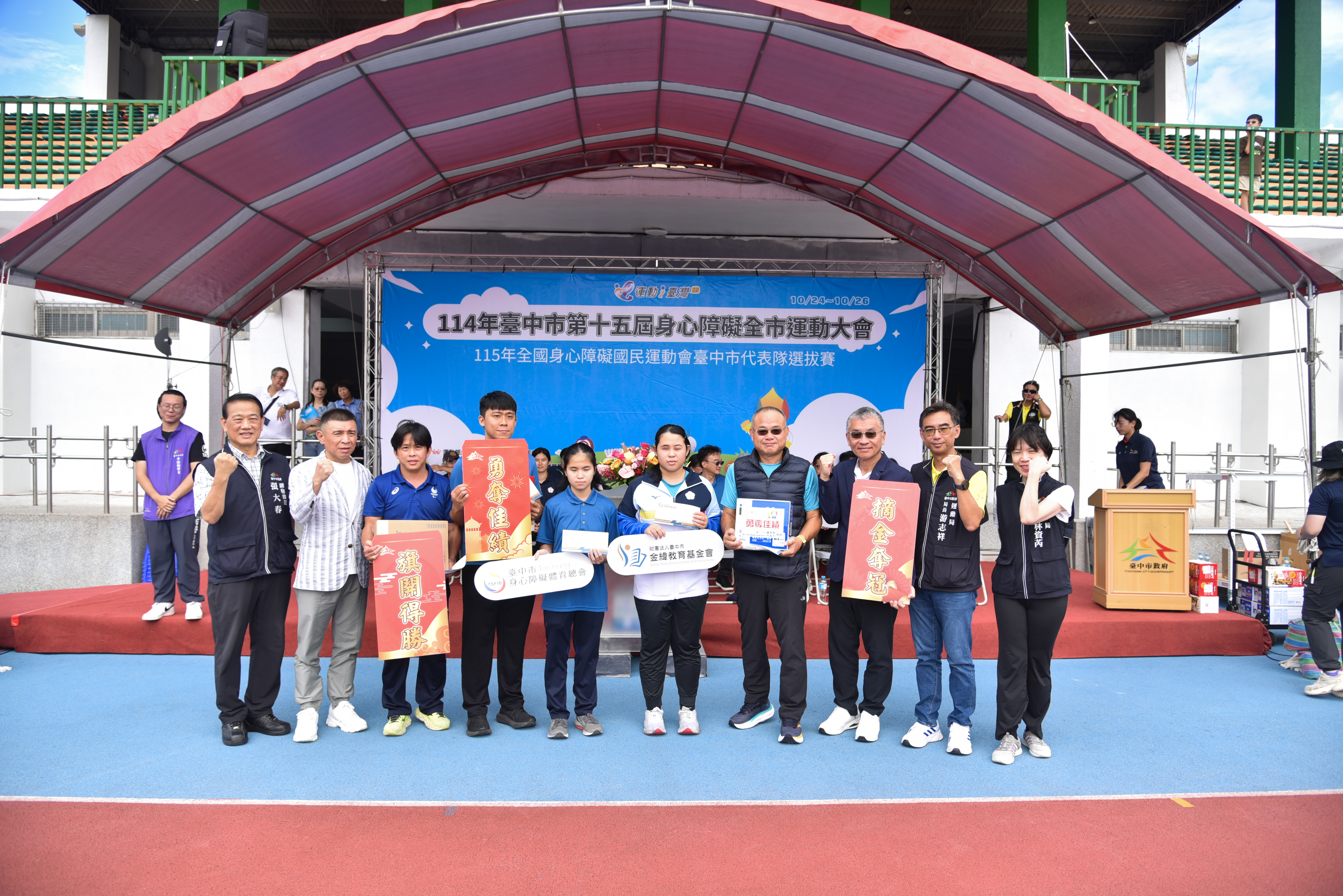 由台中市政府運動局與台中市身心障礙體育總會共同辦理的「114年台中市第十五屆身心障礙全市運動大會暨115年全國身心障礙國民運動會台中市代表隊選拔賽」今(24)日起一連三天於台中熱鬧登場。開幕典禮由市府張大春副秘書長代表盧秀燕市長出席,感謝林孟令理事長及團隊長期與市府攜手推動身心障礙運動。身心市運會今年邁入第15屆,吸引約1,700人齊聚,爭取115年全國身心障礙運動會代表隊資格。張副秘書長預祝選手全力以赴、展現最佳實力,未來持續代表台中、為台灣再創佳績。