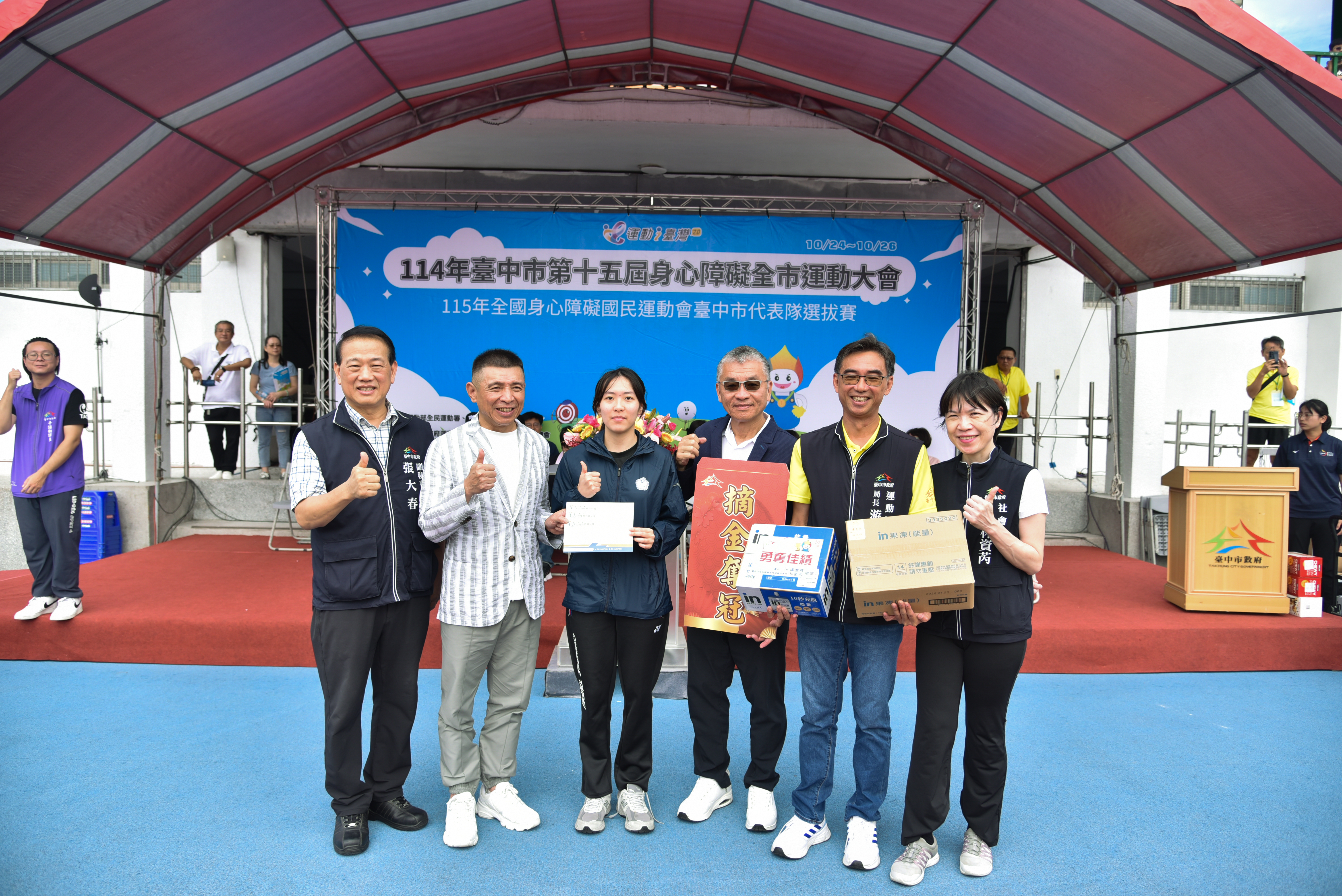 張副秘書長表示,盧市長上任以來積極推動城市運動發展,為身心障礙運動員打造展現自我與追夢的舞台,使台中在身障運動領域成果有目共睹。近三屆全國身心障礙運動會中,台中市代表隊皆榮獲全國第二佳績,多位優秀選手更於國際賽場屢創高峰,包括林姿妤甫於2025年北京帕拉桌球亞洲錦標賽勇奪3金、2024年巴黎帕運摘下女子雙打銀牌、2023年杭州亞帕運再獲2金1銀,聽奧跨欄項目世界紀錄保持人許樂亦將於年底達弗林匹克運動會出賽、賴儀庭於2025年冬季世界特殊奧林匹克運動會雪鞋項目奪金。2023年夏季世界特殊奧運中,台中市選手更貢獻4金2銀1銅,表現亮眼。這些成績象徵台中選手在世界舞台上的競技能量,也印證市府長期投入與培訓成果的豐碩。