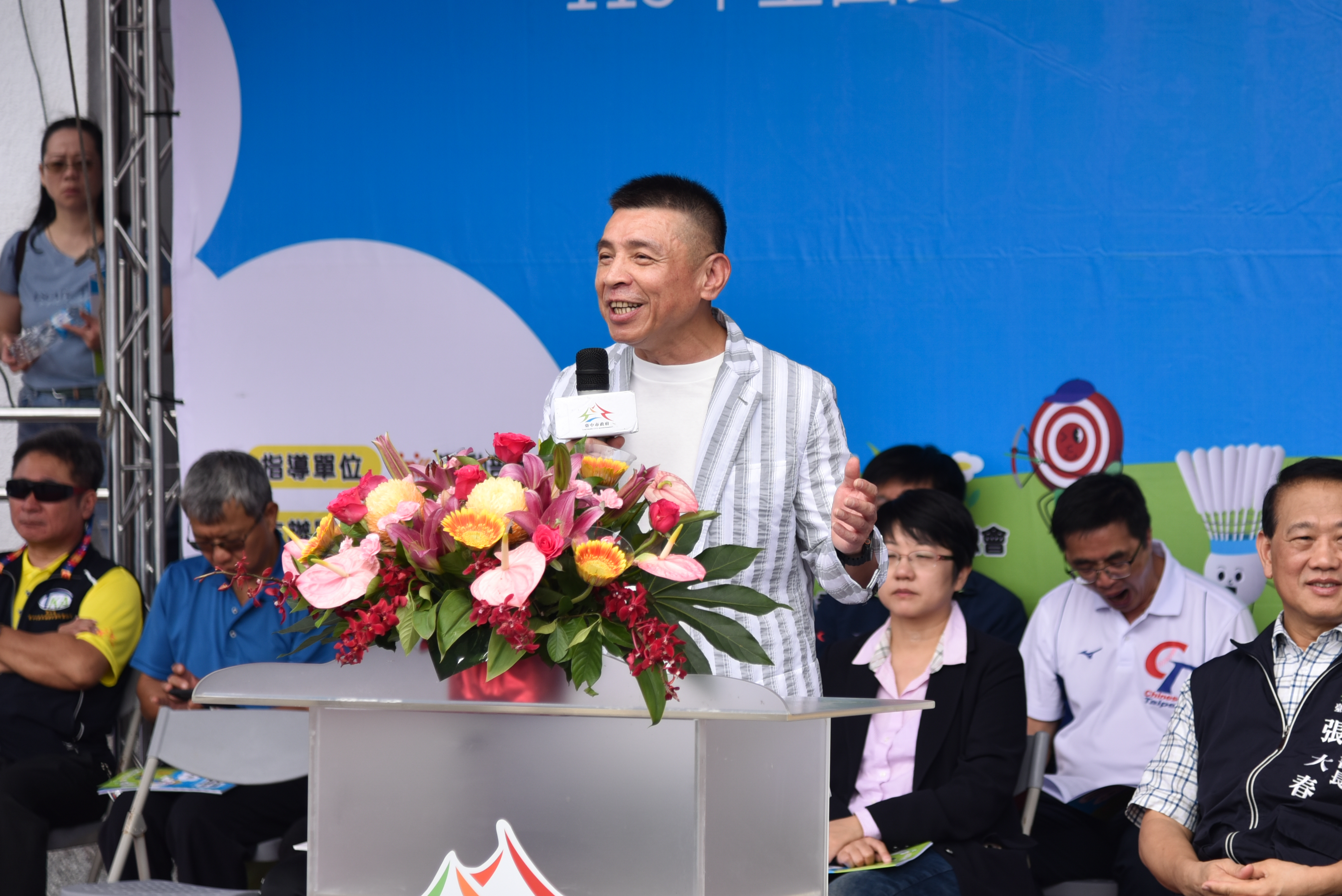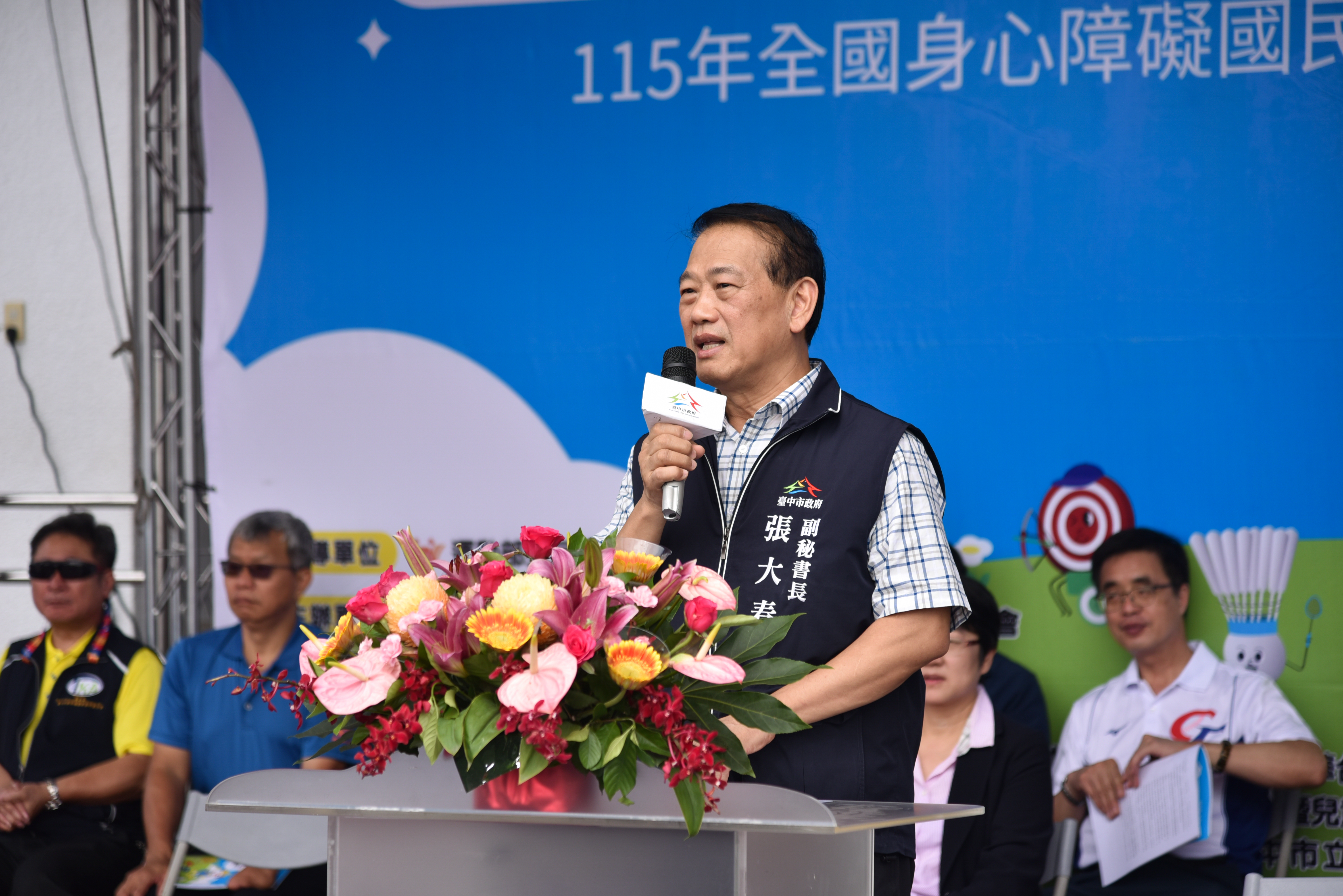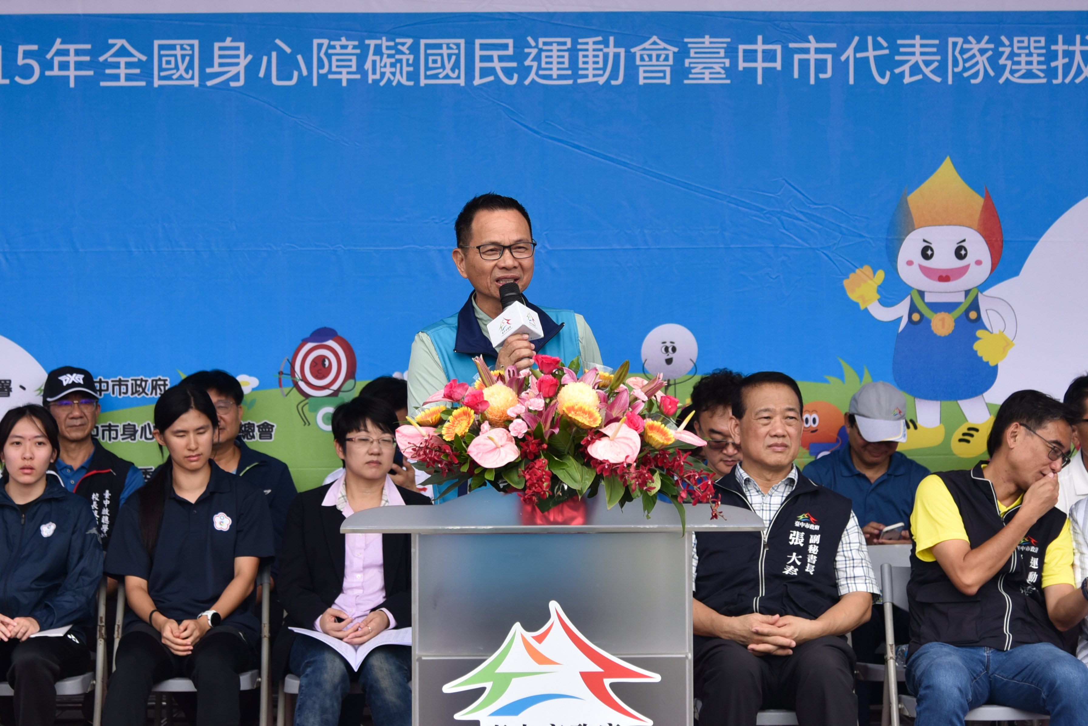 今日開幕典禮,包括市府副秘書長張大春、台中市身心障礙體育總會理事長暨市議員林孟令、輔導理事長暨市議員陳清龍、運動局游志祥局長、社會局副局長林資芮、教育局體健科秘書李有峻、台中市身心障礙體育總會秘書長陳薇任、後援會會長賴鴻毅、特奧會主委周珮霖、及各常務理事及監事、維他露基金會執行長詹益榮、興大附農校長簡慶郎、豐原高商校長賴炘棠、台中啟聰學校校長蔡明郡、立新國中校長陳錦惠、公明國中校長柯杏燕、豐原國中校長羅永昇、大雅國中校長黃正隆、沙鹿國中校長鄭巧吟、神岡國小校長郭冠毅、台中市繁榮葫蘆墩促進會理事長連小華、台中市山海屯聲暉協進會理事長黃國峰等皆到場共襄盛舉。
