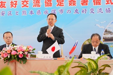 台中市大安區長許宏綺表示,大安區位於台中市西北部濱海地區,近年持續推進硬體建設、交通規劃及公園綠地等公共設施,積極提升市民生活品質。觀光方面,大安海岸線遼闊平坦,是民眾夏日休閒戲水的熱門景點;體育方面,區公所長期推廣太極拳、籃球等全民運動,鼓勵市民強健體魄、凝聚向心力。此次與水俣市締結友好城市關係,雙方將在體育、觀光、文化教育等領域展開交流合作,共同開拓多元合作機會,為地方繁榮及永續發展注入新活力,並進一步深化台日友誼。
