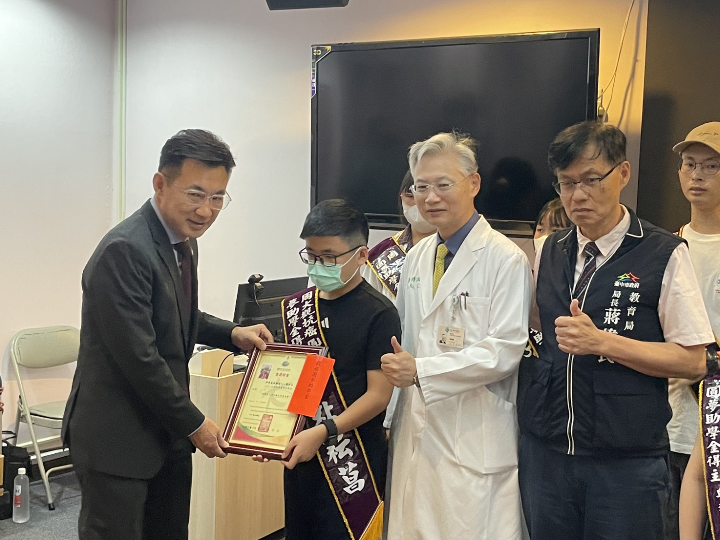 台中市政府教育局局長蔣偉民今(27)日上午親赴台中榮民總醫院,出席由財團法人周大觀文教基金會舉辦的「2025年周大觀抗癌圓夢助學金」頒獎典禮,頒發助學金給台中市的獲獎學生,為這群生命鬥士們加油打氣,並肯定他們不向病魔低頭的勇敢精神。
