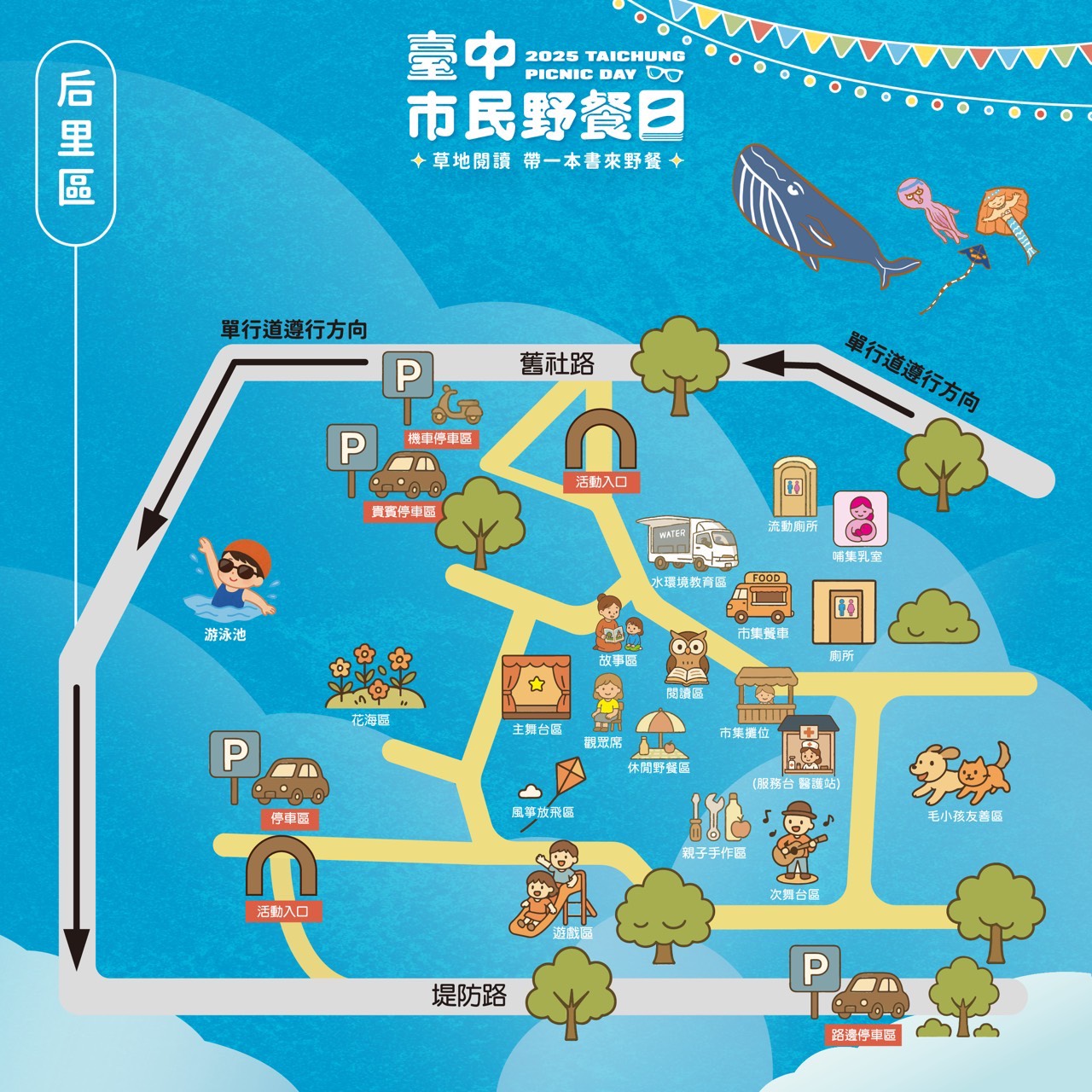 后里區長賴同一表示,后里區環保公園擁有遼闊草地與優美環境,是最適合親子踏青與野餐的地點。今年活動內容豐富,從閱讀體驗到風箏、DIY手作,皆充滿寓教於樂的精神,誠摯邀請市民「帶上一本書,一起來野餐吧!」,一起到后里享受愉快的一日遊,體驗草地野餐的無限魅力。