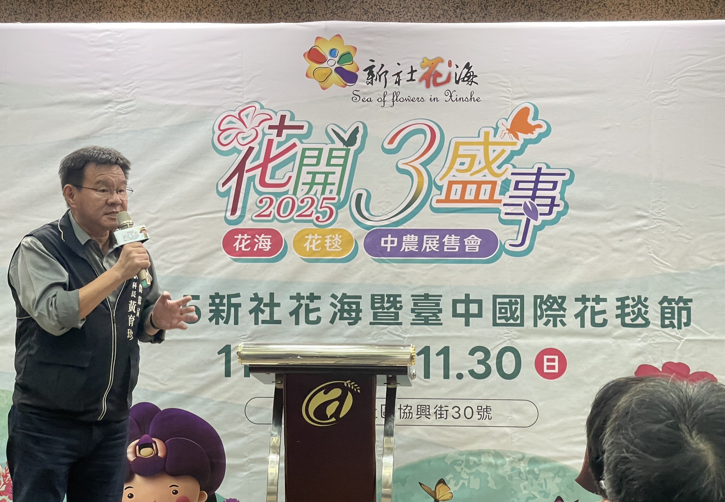 農業部昨(29)日舉辦「2025新社花海暨台中國際花毯節」展前記者會,宣布活動將於11月8日至30日在農業部種苗改良繁殖場第二農場盛大登場。今年活動以「花開三盛事:花海、花毯、中台灣農業行銷展售會」為主軸,結合景觀藝術、地方農產與休閒觀光,展現中台灣地區農業與觀光的多元魅力。