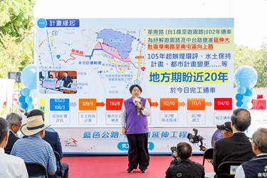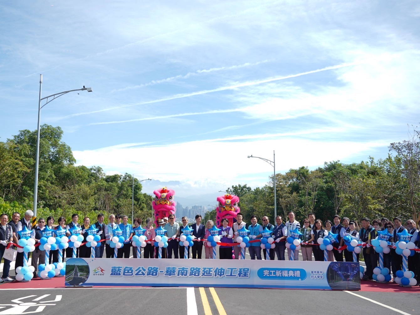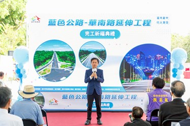 地方期盼近20年的大肚區「藍色公路」華南路延伸工程,歷經台中市府團隊努力,今(31)日正式通車!由台中市政府副秘書長林育鴻代表市長盧秀燕主持完工通車典禮,全長1,864公尺、寬20公尺的華南路自遊園路延伸至向上路,如同將藍色項鍊延長,串起大肚山脈,形成絕世美景;工程總經費斥資13.26億元打通大肚山交通瓶頸,不僅紓解遊園路及中台路口長期壅塞,也兼顧行人安全與生態永續,成為居民期盼已久的重要建設。