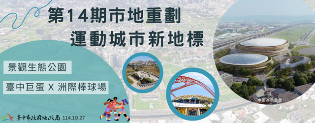 地政局進一步說明,第14期美和庄市地重劃區坐落範圍包含西屯區及北屯區,面積約404公頃,該重劃區參考國際一流城市標準,規劃完善的道路系統及公園等公共設施,並提供建設台中巨蛋用地,與台中洲際棒球場串連一氣,營造出整體的運動休閒氛圍。第15期大里杙市地重劃區坐落範圍為大里區,面積約6.9公頃,是全國首例公共設施用地解編採跨區市地重劃方式辦理的開發案,在重劃後可提供完善的公共設施,且原土地所有權人也可領回商業區、住宅區的可建築土地,對於公益、地主、政府是屬於多贏的發展表率。