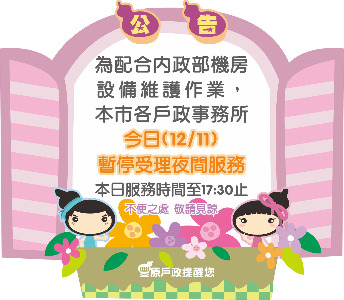臺中市豐原區戶政事務所訂於115年1月25日(星期日)暫停假日結婚預約登記
