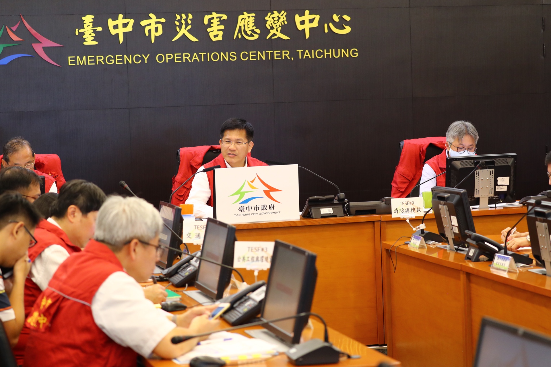台中市災害應變中心今日下午4時二級開設,林市長在議會質詢結束後,隨即前往主持第1次工作會報,各局處首長均到場報告最新災情整備情形。林市長指示,各局處及相關單位應隨時注意豪雨動態,與中央加強即時聯繫通報,緊盯各項大小災情。