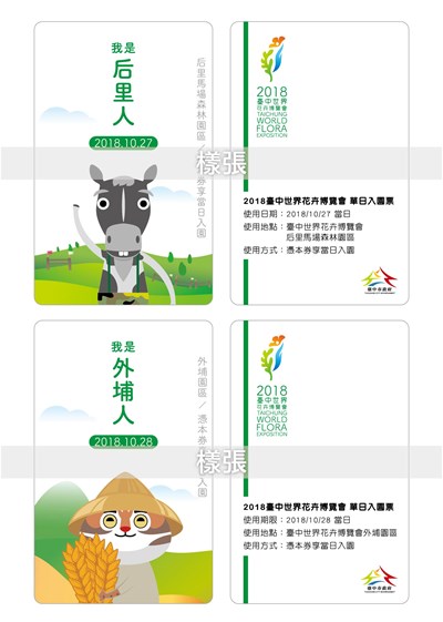 台中世界花卉博覽會將於11月3日開幕,台中市政府規劃10月27、28日舉辦「鄉親日」,邀請設籍后里、外埔的市民,分別提前體驗花博后里、外埔園區。兩款專屬邀請票卡「我是后里人」和「我是外埔人」今(19)日亮相,印有花博吉祥物「歐米馬」、「虎爸」可愛設計的票卡,將從本周末起由里鄰長及里幹事陸續發送,后里、外埔區市民最晚10月26日前可領到。