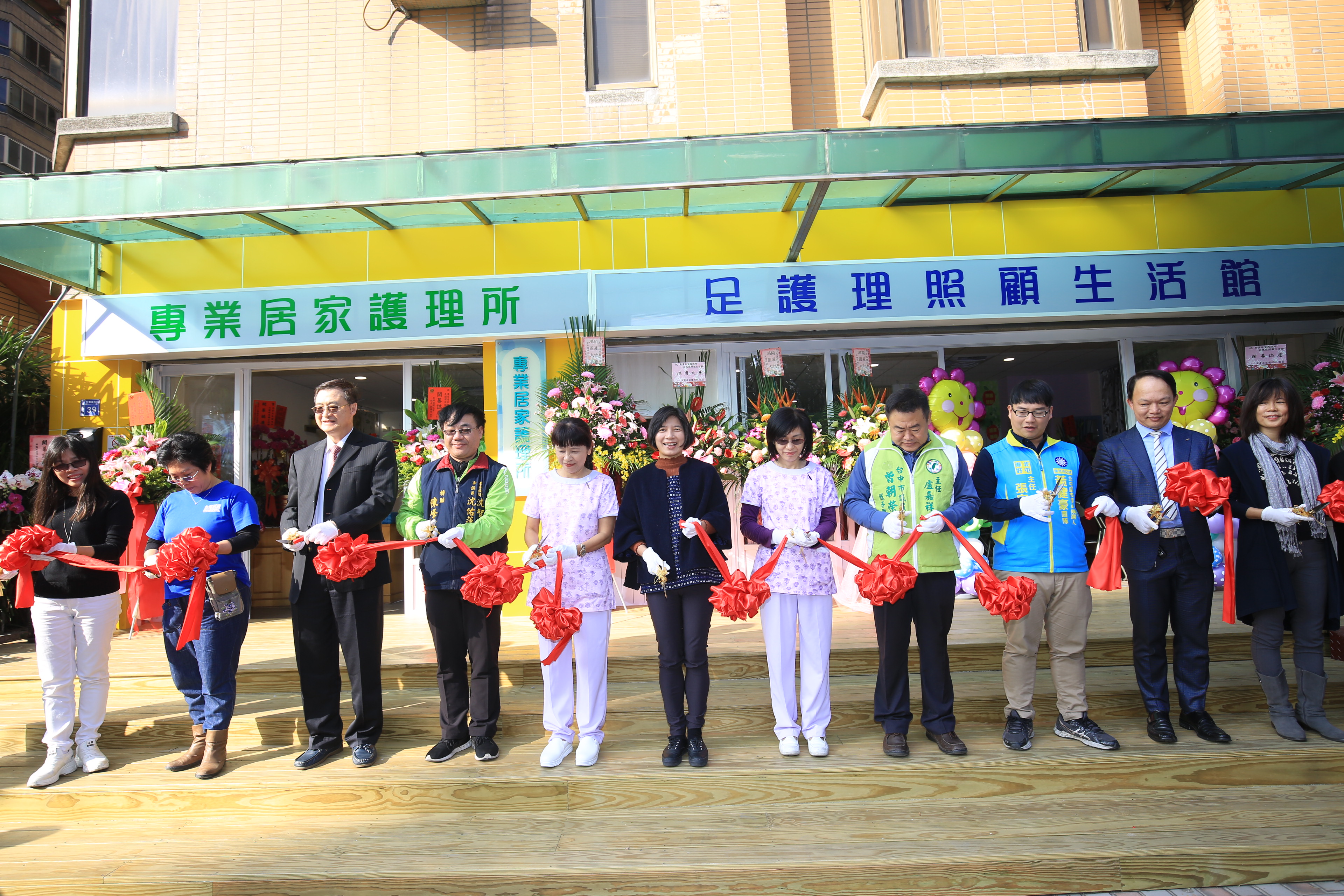 林副市長今日在衛生局代表陪同下出席「足護理照顧生活館」開幕活動,並與專業居家護理所所長呂郁芳、新北市A據點聯順居家護理所所長汪秋蓉等人一同剪綵,包括市議員曾朝榮、沈佑蓮服務處代表也到場關心;現場提供足壓測試儀器及足部護理器材的體驗,讓社區民眾、長者能更進一步了解足部狀況及足部護理實際效用。