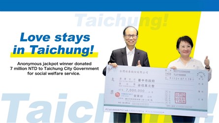 台彩董事長薛香川表示,公益彩券銷售收入近40%用做公益,從96年1月起累積至今年5月底,為政府創造4,393.94億元公彩盈餘,中獎人捐款達58.7億元,捐助超過200個社福單位及公益團體,受捐助對象從學齡前幼兒、經濟弱勢家庭、身心障礙人士到偏遠地區的獨居老人,超過769萬人次受惠。此次中獎人將所得一半捐出,這在台灣彩券中獎人捐款紀錄中從未有過,破紀錄,非常敬佩!