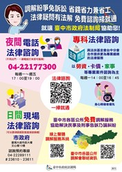 ◎於各區公所提供免費法律諮詢服務 https://www.taichung.gov.tw/2100395/post