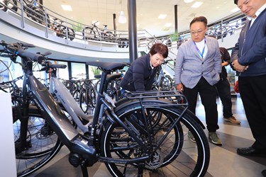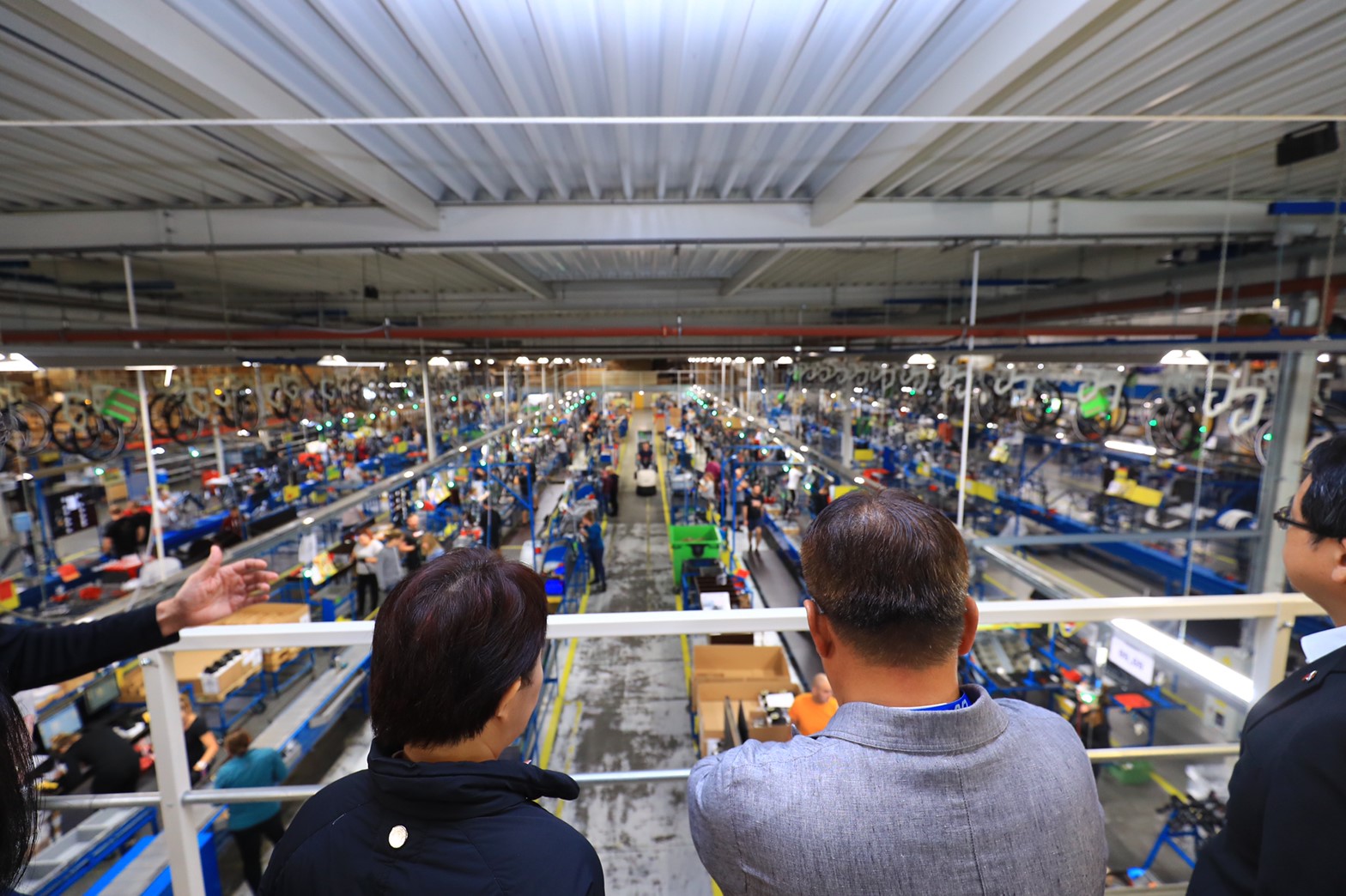 這趟參訪由巨大集團執行長劉湧昌、派駐在荷蘭20多年的捷安特國際業務處總經理劉英平親自接待盧市長,劉總經理簡報捷安特歐洲廠時表示,自行車一直是台灣品牌的代表產業,捷安特目前在歐洲年銷售超過 40 萬台各類型自行車及電動車,主要由台灣工廠以及荷蘭工廠供貨。