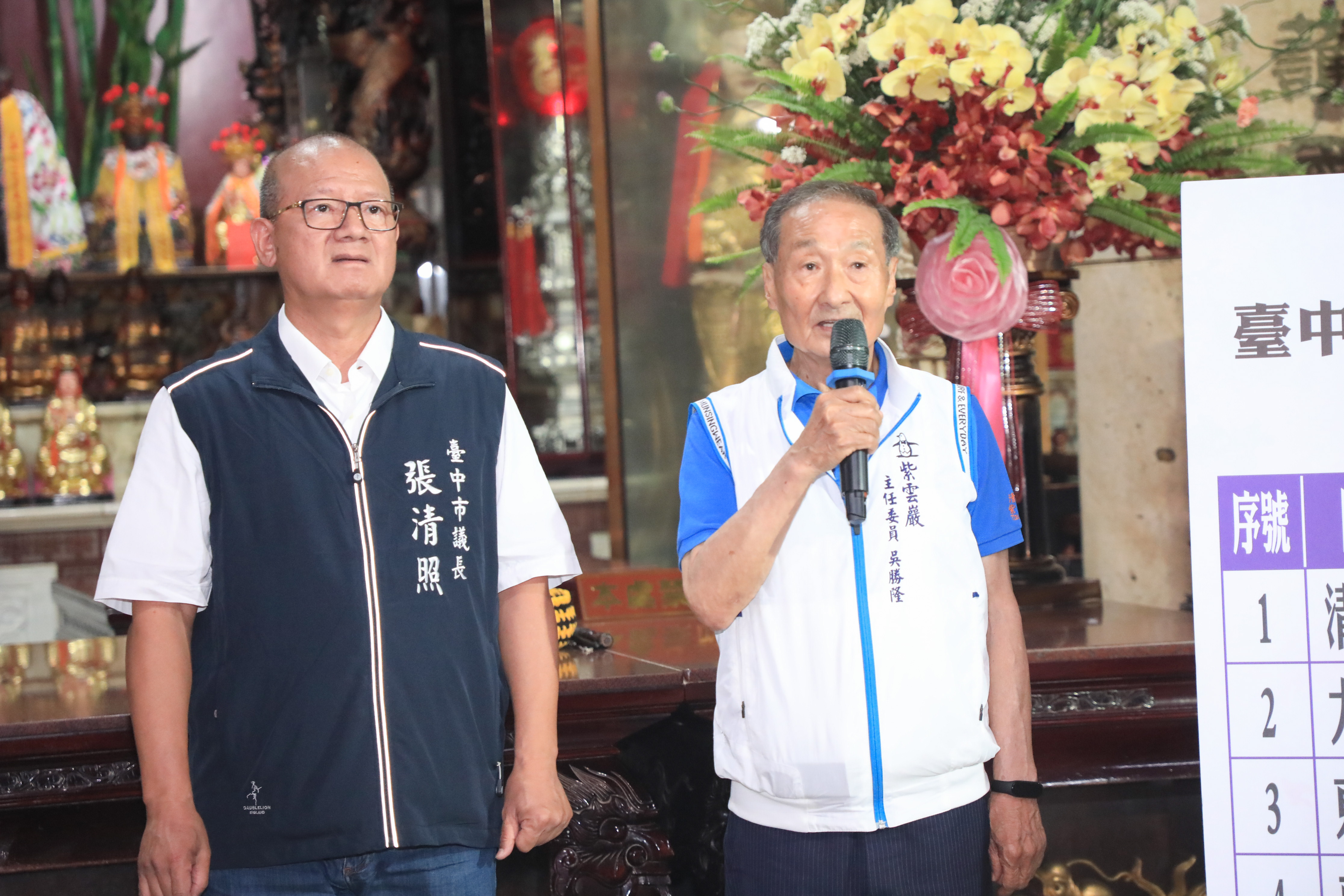 今日捐贈儀式,盧市長、台中市議會議長張清照、前議長張清堂、民政局長吳世瑋、清水區長蔡慶生、清水警分局長蔡慶星、清水紫雲巖主委吳勝隆及所有委員均到場。