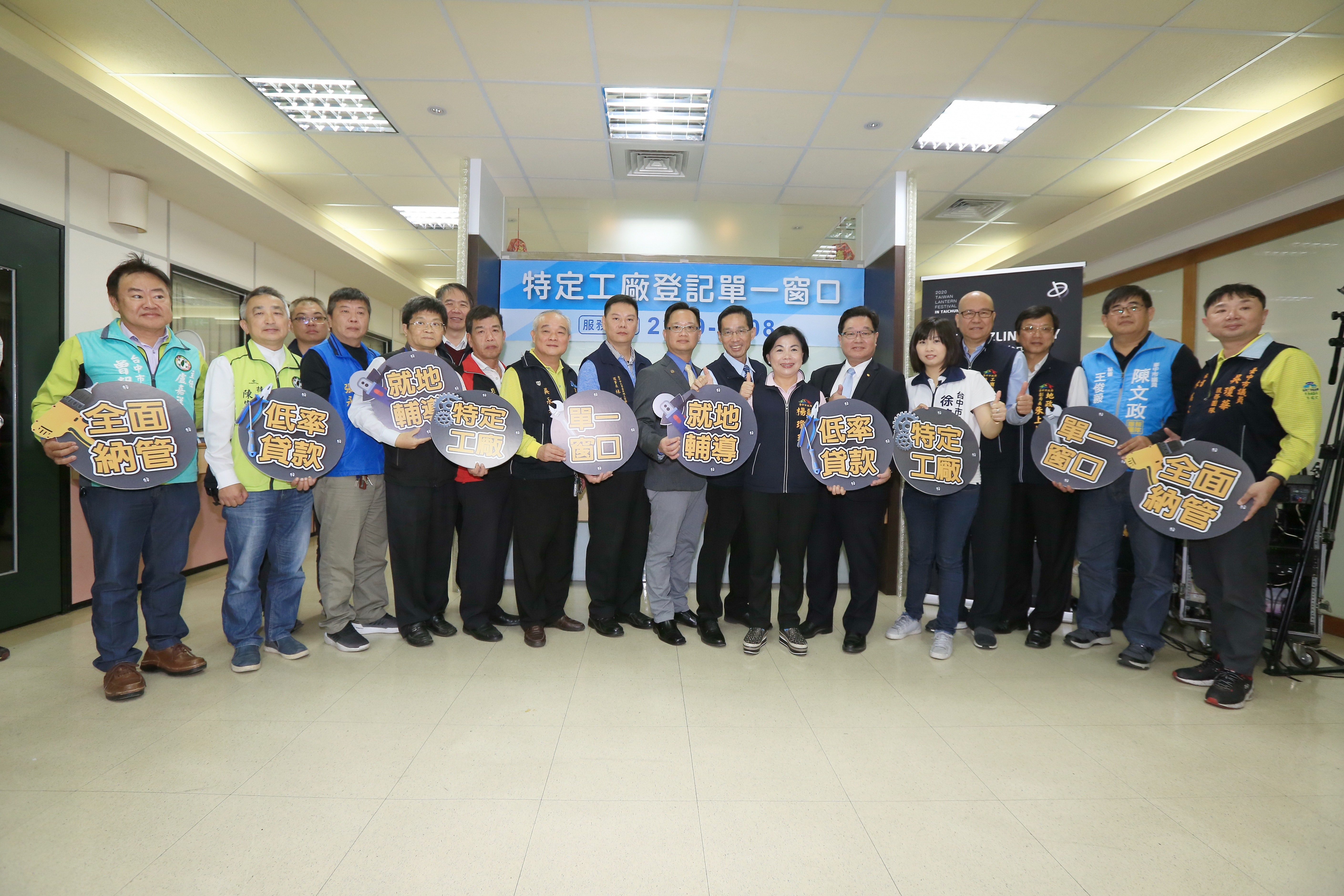 台中市政府為輔導廠商全面納管、就地合法及合法經營,全國首創今(2)日成立「特定工廠登記單一窗口」提供法規諮詢、文書建議、受理換證申請等,並與台中銀行合作,經市府核准工廠改善計畫的納管工廠,可申請「工廠改善準備金」貸款改善消防設備、環保設施及排水設施等,提供最高300萬元、最低利率1.9%且免擔保品,大幅減輕廠商負擔,助其順利完成特定工廠登記。