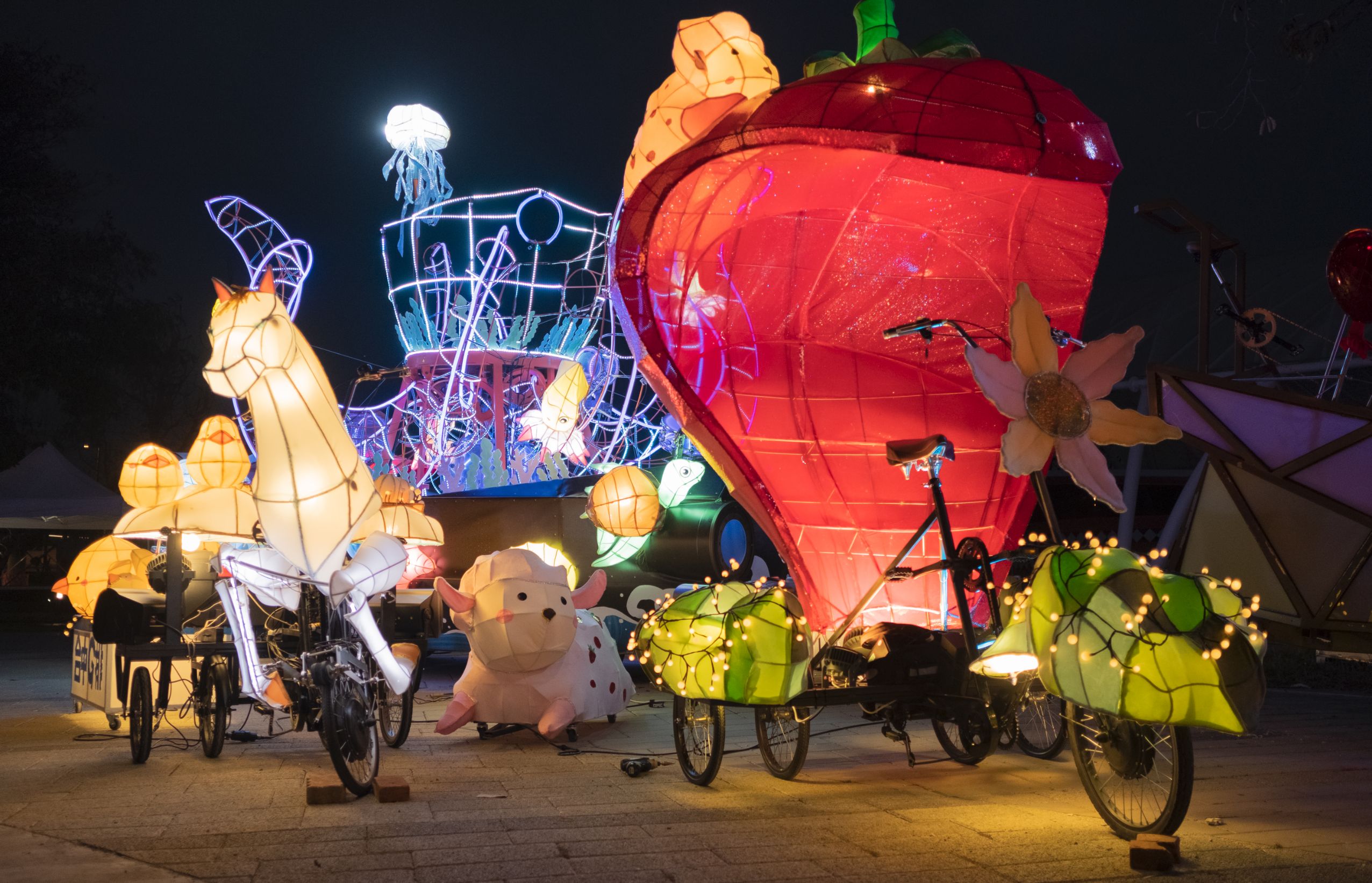 2020台灣燈會主展區將於2月8日在后里花博園區登場,台中市政府文化局邀請新媒體藝術策劃團隊「噪咖事務所」,結合藝術與科技,打造包括蝴蝶珍奶車、鐵馬奇雞車、羊來了草莓車、狼來了楊桃車等7大主題組成夜光遊行車「寶島炫光巡邏隊」,燈會期間每天下午3時及5時進行踩街遊行,準備用KUSO又充滿童趣的表演嗨翻遊客。