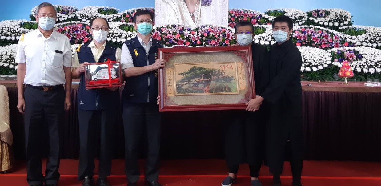 此外,已故市民劉楊碧蘭生前樂善好施,其子女劉文賢、劉玲婉、劉玲燕、劉玲珍、及媳婦趙春紅為完成先母遺願,合資購置一輛救護車,並將其命名為「劉楊碧蘭紀念號」捐贈消防局執行緊急救護勤務使用,今日捐贈典禮於市民劉楊碧蘭告別式辦理,由副局長楊元吉代表受贈,並回贈感謝狀,感謝市民善心。(8/17*18)*消防局