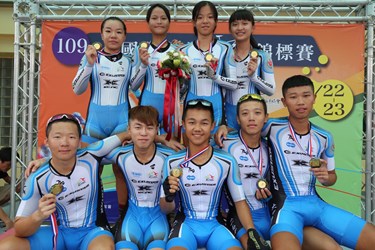 「109年全國自由車場地錦標賽」今(22)日至23日於台中清水鰲峰山公園自由車場舉行,共計122位選手參賽,包括2014釜山亞運金、銅牌好手蕭美玉、黃亭茵等人同場競技,賽事精彩!市府運動局長李昱叡今日出席為4公里團隊追逐賽頒獎,肯定選手優秀表現。