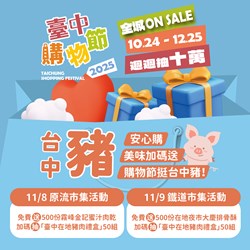 台中豬安心購!台中市政府嚴守非洲豬瘟疫情,明(7)日即將解封。為鼓勵民眾安心食用台中優質豬肉,這週六(8日) 霧峰原流新創聚落「台...