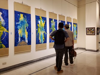 今日開幕現場吸引眾多民眾到場欣賞,台中市副市長黃國榮、台中市前市長胡志強、台北市副市長蔡炳坤、立法委員黃國書、文化部前政務次長林金田、故宮南院前院長洪慶峰、市政顧問倪朝龍、國際彩墨畫家聯盟會長黃朝湖、國立台灣師範大學美術系教授莊連東等人皆到場祝賀。(11/21*15)*文化局