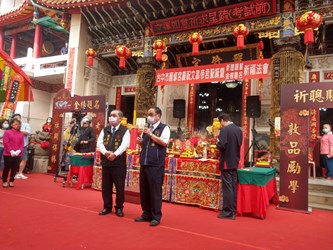 吳局長表示,醒修宮主神祀奉關聖帝君,雖為「武廟」,但也祀奉孔子與文昌帝君,是南區重要的宗教信仰中心,長期推動公益慈善事業,對教育、文化的推動及社會服務不遺餘力,期盼廟方持續發揮宗教信仰安定人心、教化善良風俗及穩定社會的力量。