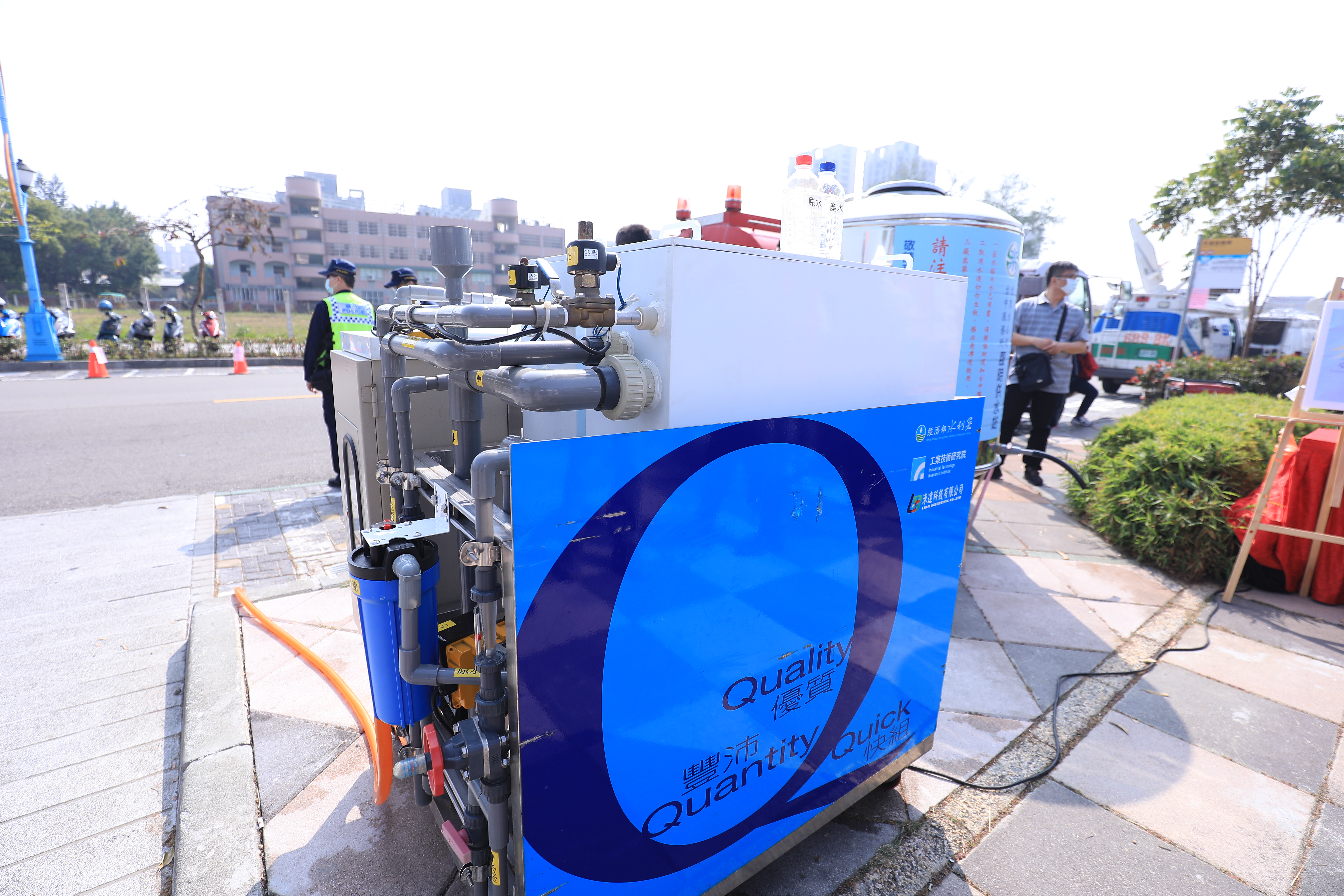 另外,因台中地區地下礫石層多,地下水源資源豐富,為不浪費新建建築工地地下水資源,都發局除要求廠商設置取水閥,提供做為次級用水外,更嘗試納入民生用水,選擇符合自來水取水品質的地下水資源,搭配經濟部水利署的移動式緊急淨水設備(Qwater)進行水質淨化,增加飲用水,產水量為一天15噸,每天約可供給7500人飲用;另為維護飲用品質,環保局將加強水質抽檢,讓民眾安心使用。