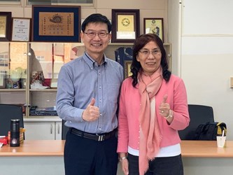 信望愛東勢小作所5名學員,昨(30)日由督導黃玉葉及社工員陪同,於今年最後一個上班日下午,來到位於豐原陽明大樓的台中市政府客家事務委員會報佳音,由主委江俊龍接待。學員們贈送江主委手做藝品與卡片,江主委則回贈小福袋,希望學員們新的一年平安、健康。鳳飛飛慈善基金會執行長周詠淳,也到場與學員們同樂。