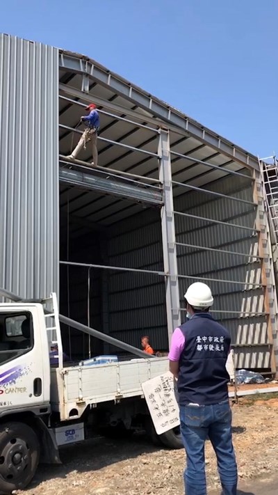 都發局表示,大肚區遊園路一段63巷農地違建,面積約1500平方公尺,高度約7公尺;烏日區五光路復光一巷農地違建,面積約1000平方公尺,高度約7公尺;神岡區豐洲路1550巷農地違建,面積約850平方公尺,高度約7公尺,3案均為農地違建查報拆除後,又未經申請重新搭蓋使用,違規情節重大,經通知限期拆除,並於今日排定強拆,但在執行拆除前業者已自行拆除中,基於維護民眾財產及撙節拆除經費,都發局將督促業者限期於三日內拆除完畢。