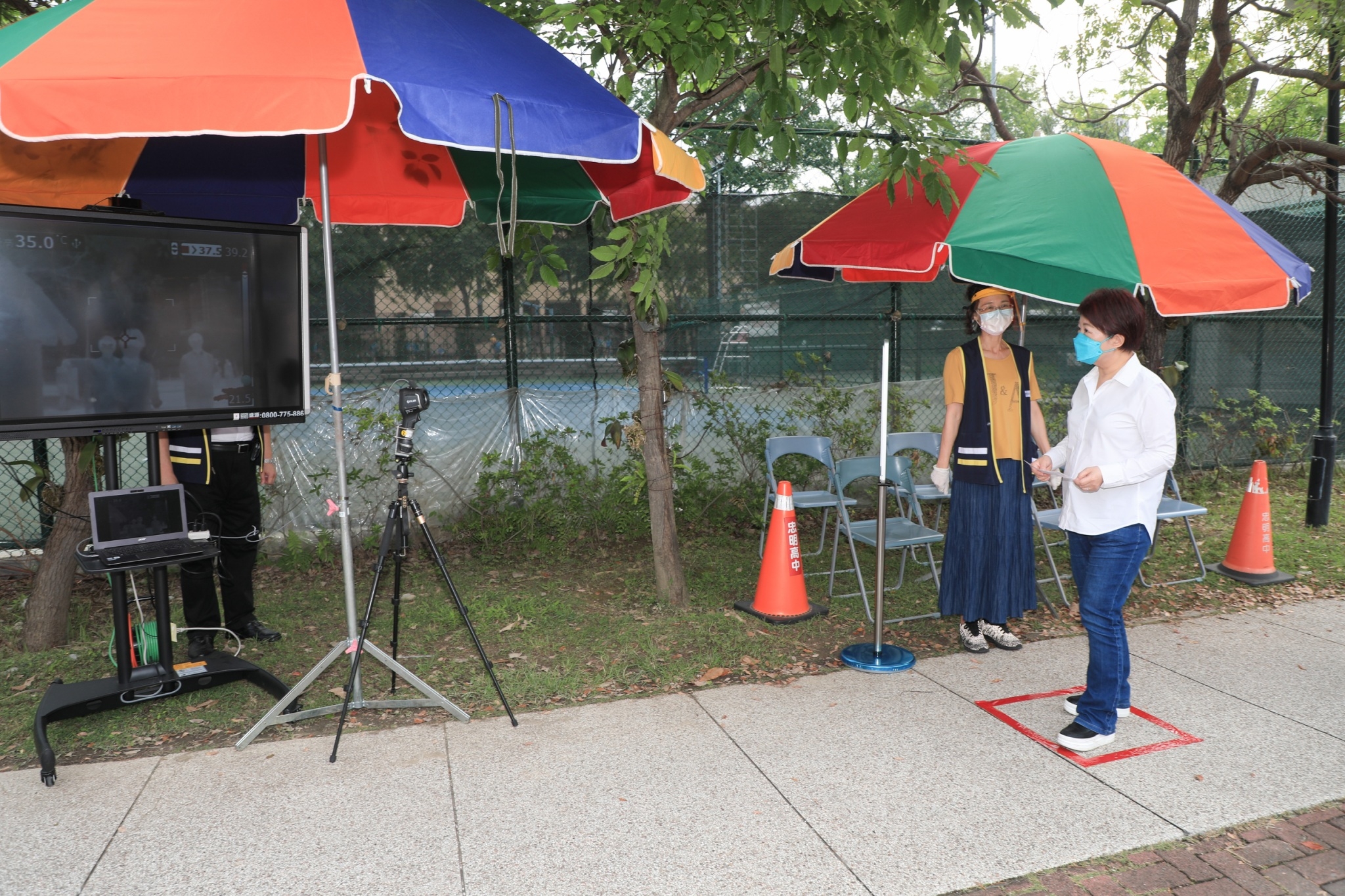 今年國中教育會考即將於5月21、22 日登場,台中市長盧秀燕今(19)日特地前往忠明高中考場,視察防疫整備情形,從進入校園量測體溫動線、熱像儀測試、考場休息區及用餐規劃安排、備用試場分流措施等,逐項檢視,實地模擬演練,務求考試當日零缺失,確保考生健康安全,並慰勉考場人員辛勞。