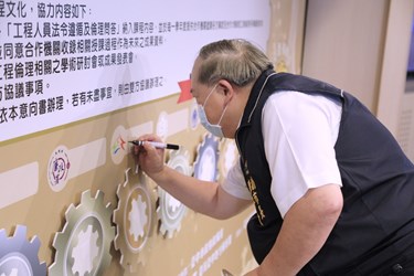 廉政署副署長沈鳳樑肯定及感謝市府首次以「聯盟」概念,結合多所學校,全面將「工程人員法令遵循及倫理問答」導入大學教育,培養學生工程倫理認知及職場應用能力,讓準工程人員在未來面臨衝突選擇時能有所依循。