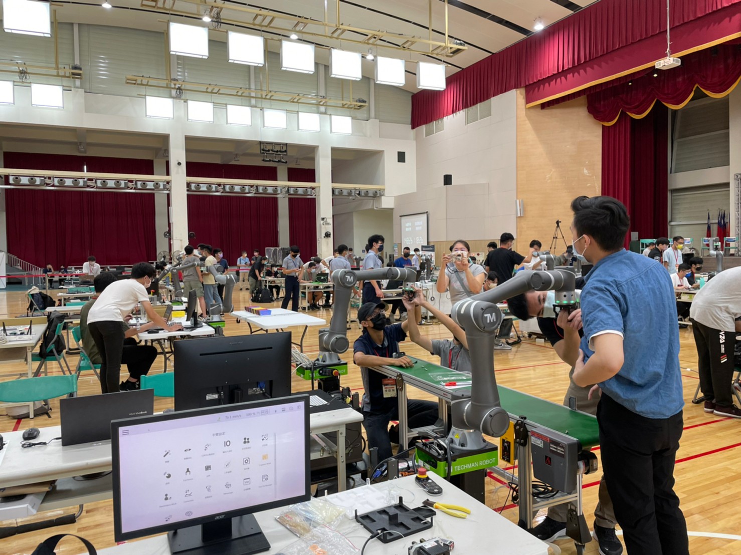 2022全國智慧製造應用競賽今(19)日在台中高工體育館舉行,全國共有50多所大專與高中職學校參與,百位參賽者努力完成100小時的實體課程與後續線上課程,透過競賽多元方式,讓學生了解並使用智慧機械手臂進行程式編撰、外氣控制機械手臂、AI人工智慧視覺辨識、自動化周邊設備連線與設定等智慧製造相關技術,提早為未來的職場能力打下基礎。