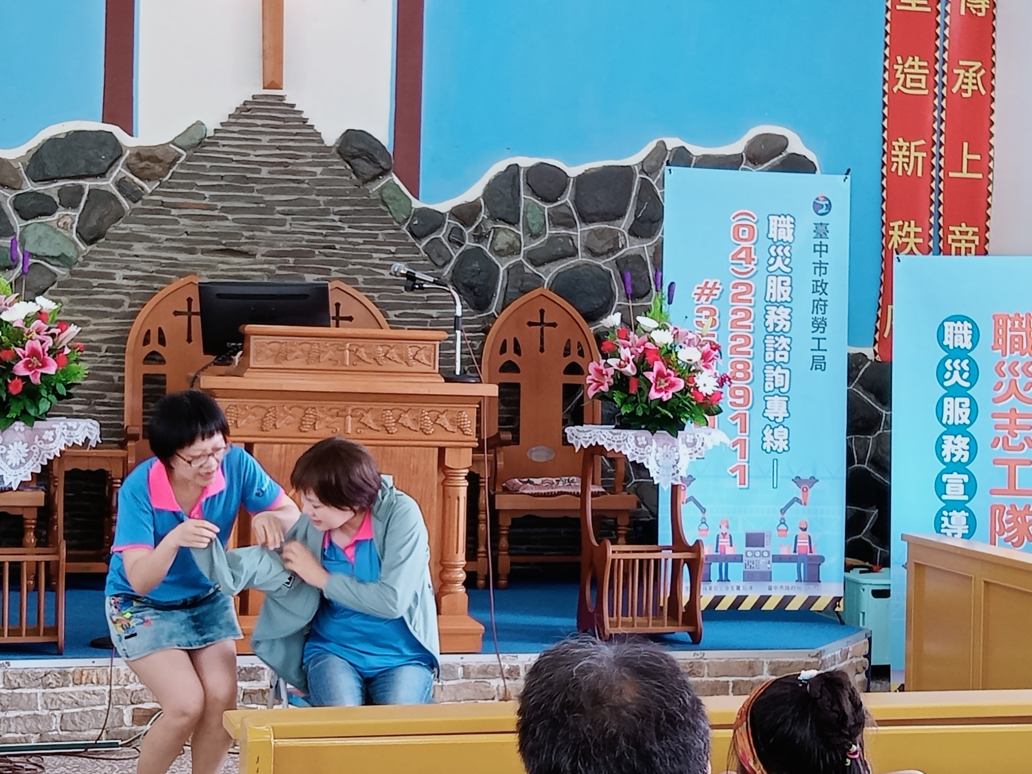 台中市政府勞工局職災志工隊日前首次到大肚大山教會,藉由戲劇表演帶出職災勞工的需求與困境,並宣導社區民眾如何善用職災服務資源。勞工局長張大春表示,台中市職災志工隊成立10餘年,共11名志工,其中4名為高齡志工人力,平時皆會憑藉專業知能與服務經驗,透過電訪提供職災勞工或家屬關懷,若未接通也會郵寄關懷問卷,讓每個需求不漏接。