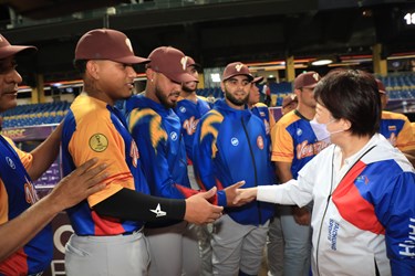 盧市長表示,很榮幸能在台中舉辦國際棒球賽事,並與本屆賽事主辦單位世界棒壘球總會(WBSC)執行長Michael Schmidt相見歡,分享賽事心得。她說,歡迎各國到訪台中,將盡地主之誼,她也前往委內瑞拉隊表達台中的歡迎之意,並致贈台中名產太陽餅。