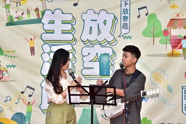 台中市政府客家事務委員會、世界宗教博物館發展基金會、聯合國非政府組織愛與和平地球家(GFLP)合辦「放空生活節—共下放尞趣」草地音樂會活動,昨(22)日下午在東勢客家文化園區登場,結合音樂演唱、市集、流體畫工作坊、快閃素食餐車等,並邀請亞洲美食天王陳鴻到場上菜,現場烹煮養生甜品桃膠,提倡「身心放空愛地球」。