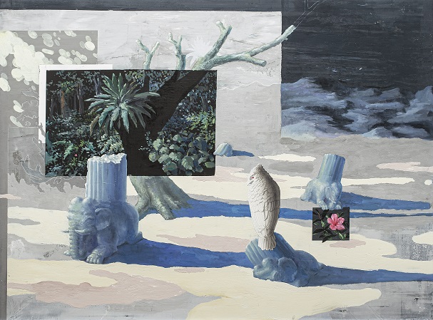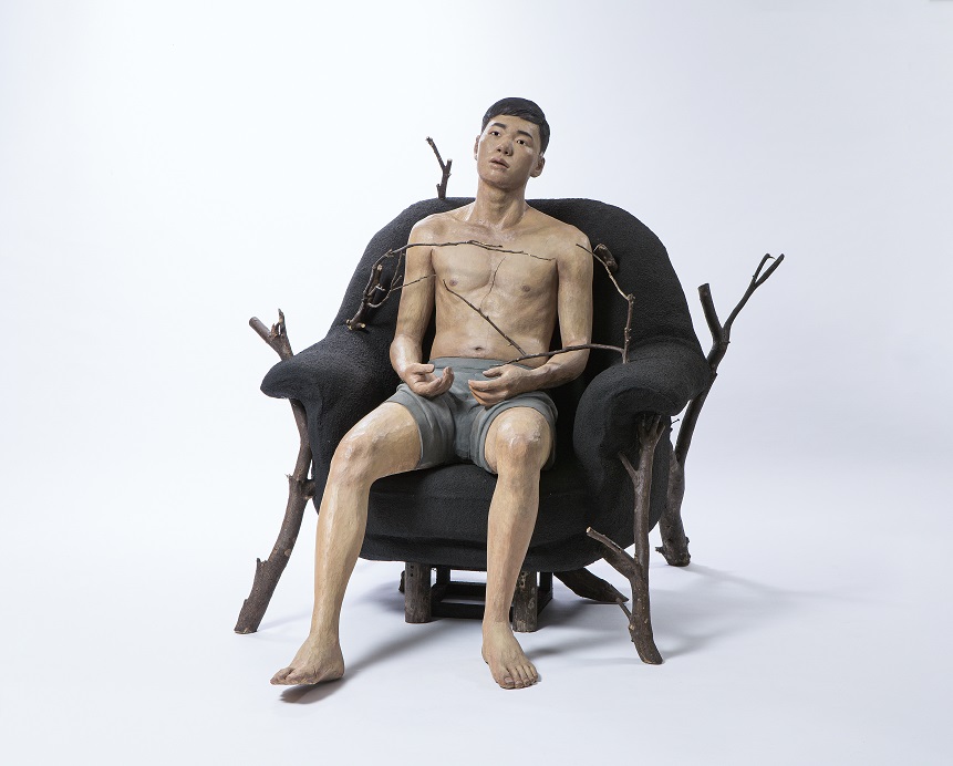 此外,油畫類首獎黃彥勳年僅28歲,曾在2015年獲第20屆大墩獎,時隔7年再次以《殘景、光斑、遠鄉》獲獎,以象徵符號、幻象空間、廢墟風景,表達時間的消逝和往事故景不再的陌生感;同為新生代藝術家的潘煒中,作品《共棲附生》將楠木材、石頭漆、水泥、樹枝等人造和自然材料巧妙結合,呈現生物間的共生關係,嘗試向觀眾提問人與自然共處的可能。