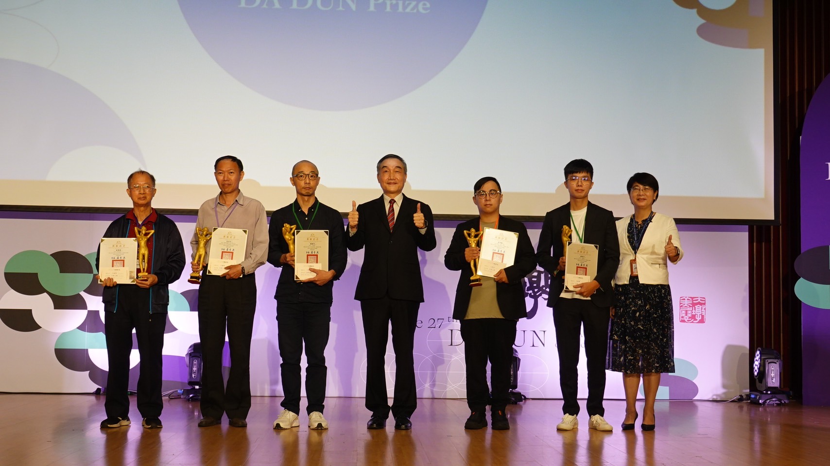 臺中市第27屆大墩美展頒獎典禮評審貴賓與大墩獎得獎人合影