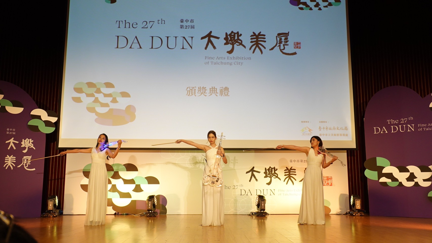 昨日頒獎典禮,由知名主持人林書煒與作家吳若權聯手主持,邀請「台灣梧桐弦樂團」及「羅月廷跨界藝能團」帶來精彩表演;副市長黃國榮、市議員劉士州、文化局長陳佳君、各類評審委員代表、得獎藝術家及親友皆踴躍出席。(11/6*8)*文化局