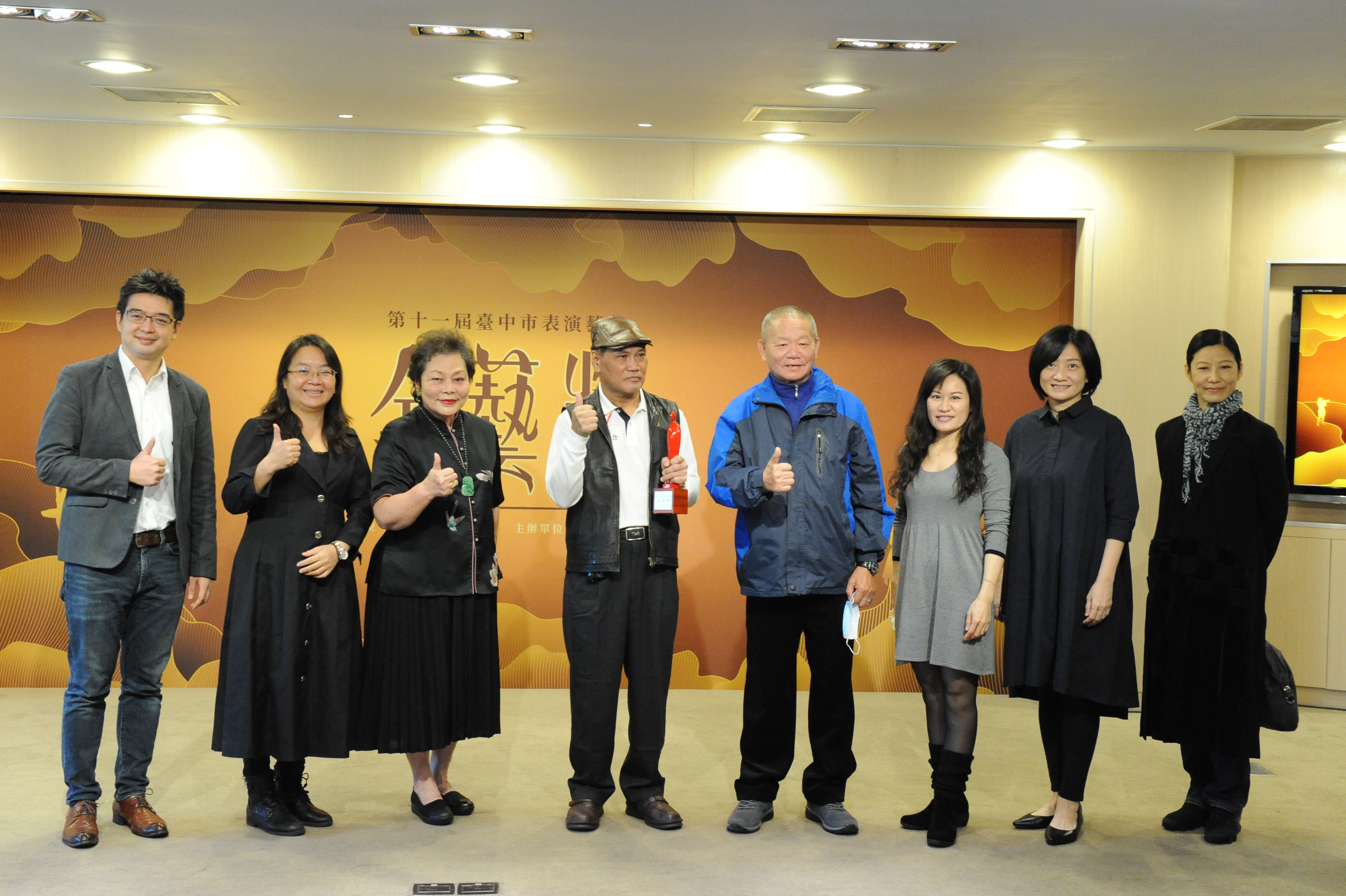 象徵台中市表演藝術最高榮譽的「第十一屆台中市表演藝術金藝獎」今(8)日在台中市政府舉行頒獎典禮,今年共有來自戲劇、音樂、舞蹈和戲曲等各領域的個人和團隊共12組角逐,副市長黃國榮代表市長盧秀燕出席,現場揭曉由磐宇木偶劇團團長兼主演王文生獲得殊榮,黃副市長頒獎及恭喜得獎者,也感謝所有表演藝術者長期在各自領域奉獻,為城市創造和帶來更豐富的藝術能量。
