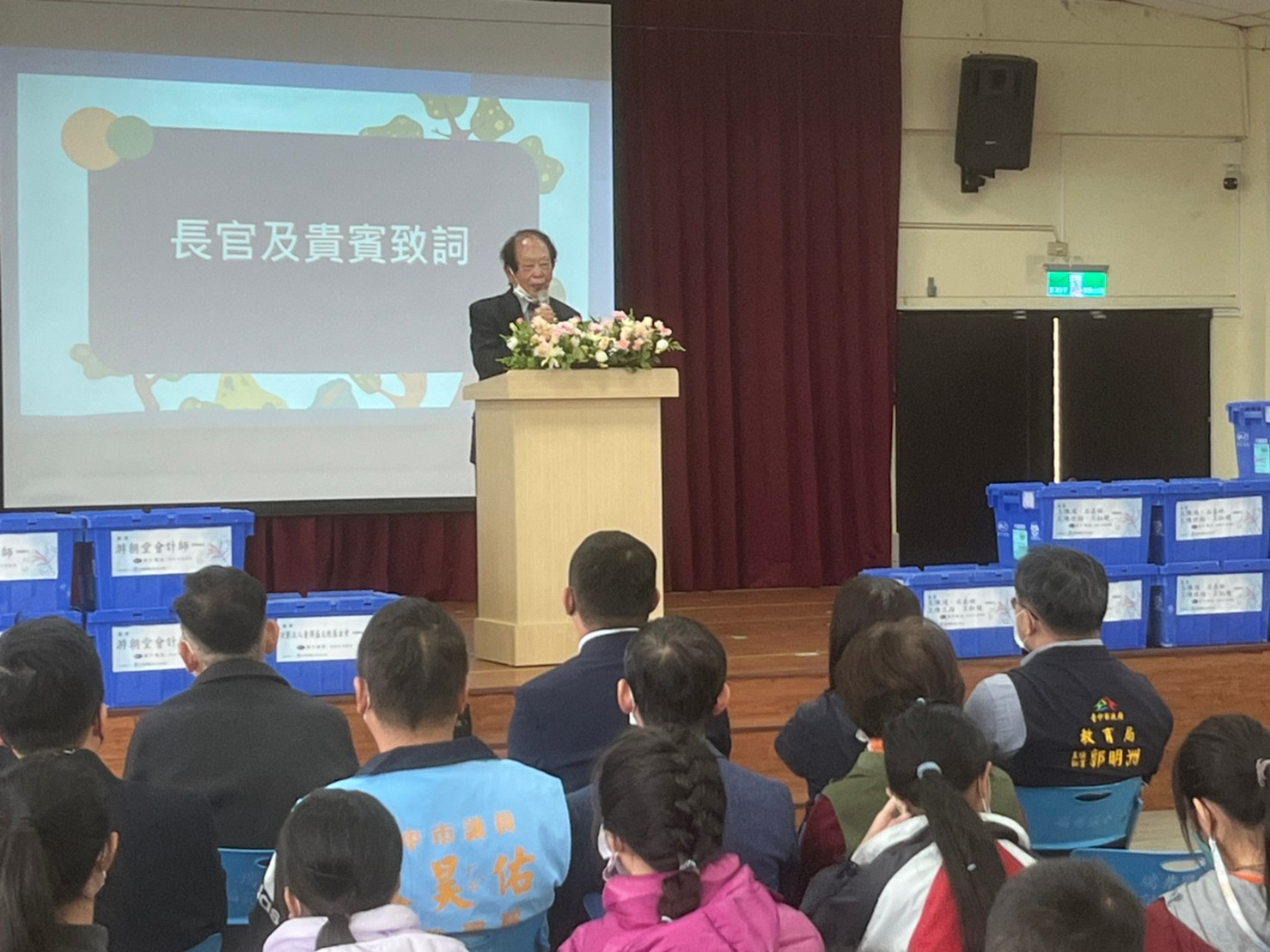 郭主秘指出,台灣閱讀文化基金會集結社會資源協助台中市設置「愛的書庫」,111學年度已設置34座,秉持「共讀分享、智慧循環」理念,以「免費借用共讀書箱」、「公益配送書箱到校」,透過上網預約登記及便利的物流運送,讓書在更多孩子手中傳閱、在班際中交流、在校際中循環。教育局將持續串聯中央與地方各界資源,兼顧閱讀的質量與軟硬體設置,提供師生最豐厚的閱讀教育,感謝財團法人中台文教基金會、王陳鴻先生全家福、游朝堂會計師、財團法人童傳盛文教基金會贊助,讓「愛的書庫」更新啟用。
