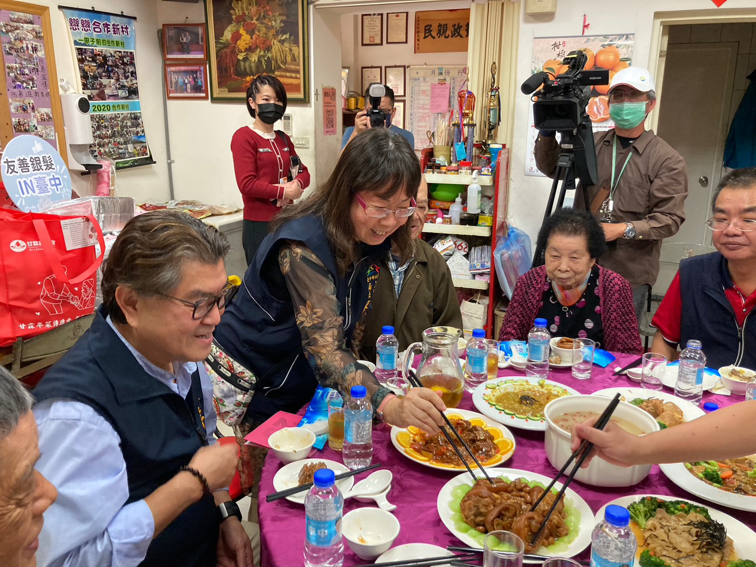 農曆春節將至,台中市10家愛心企業在民代號召下,連續多年聯合捐贈善款採購年菜,送給經濟弱勢的獨居長輩及身心障礙者。台中市政府社會局長廖靜芝和市議員李中,今(13)日在東區合作里長曾建成陪同下,提前向長輩賀年圍爐,並致贈年菜及春聯,祝福長輩福兔吉祥,健康平安。