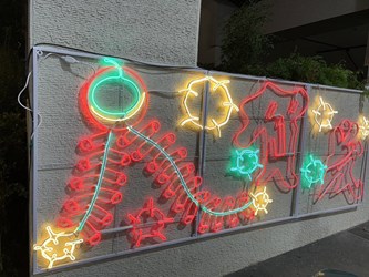 來豐原轉運中心搭車、轉乘或接送親友的民眾,賞燈時也能來欣賞候車區前的公共藝術「運轉城市」,作品外觀設計將城市喻為樹冠層,以「城市堆疊、樹冠棲居」概念,呈現人們活動的都市,融入成一片片向上而生的城市景觀,從藝術中了解周邊區域的聯繫軌跡。