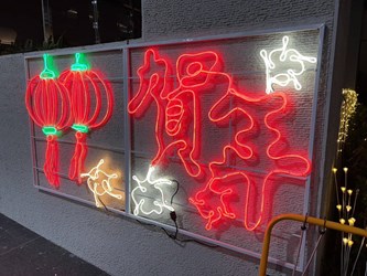 此外,交通局在市政公園地下停車場出入口處打造亮眼的兔子燈飾及周邊元宵節慶佈置,讓大家在元宵期間除了一同參與熱鬧的活動外,在進出停車場時也能留下難忘的回憶。華燈初上時,點亮市政公園地下停車場出入口旁擺設多隻兔子樣式的燈飾,馬上成為注目焦點,民眾停好車後,可以到地面層和兔子燈飾拍照留念,交通局透過元宵佳節祝福市民如同兔子蹦蹦跳跳,鴻兔大展。