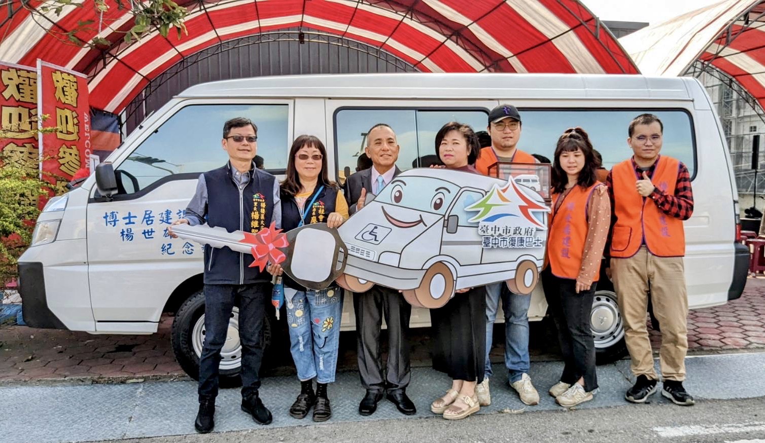 企業回饋鄉里,博士居建設有限公司今(12)日捐贈台中市政府1輛復康巴士,由社會局長廖靜芝代表受贈,感謝企業行善不遺餘力,方便身心障礙朋友就醫,協助身心障礙者交通接送,也讓身心障礙朋友能夠走出家門,參加各項活動,增加社會參與。