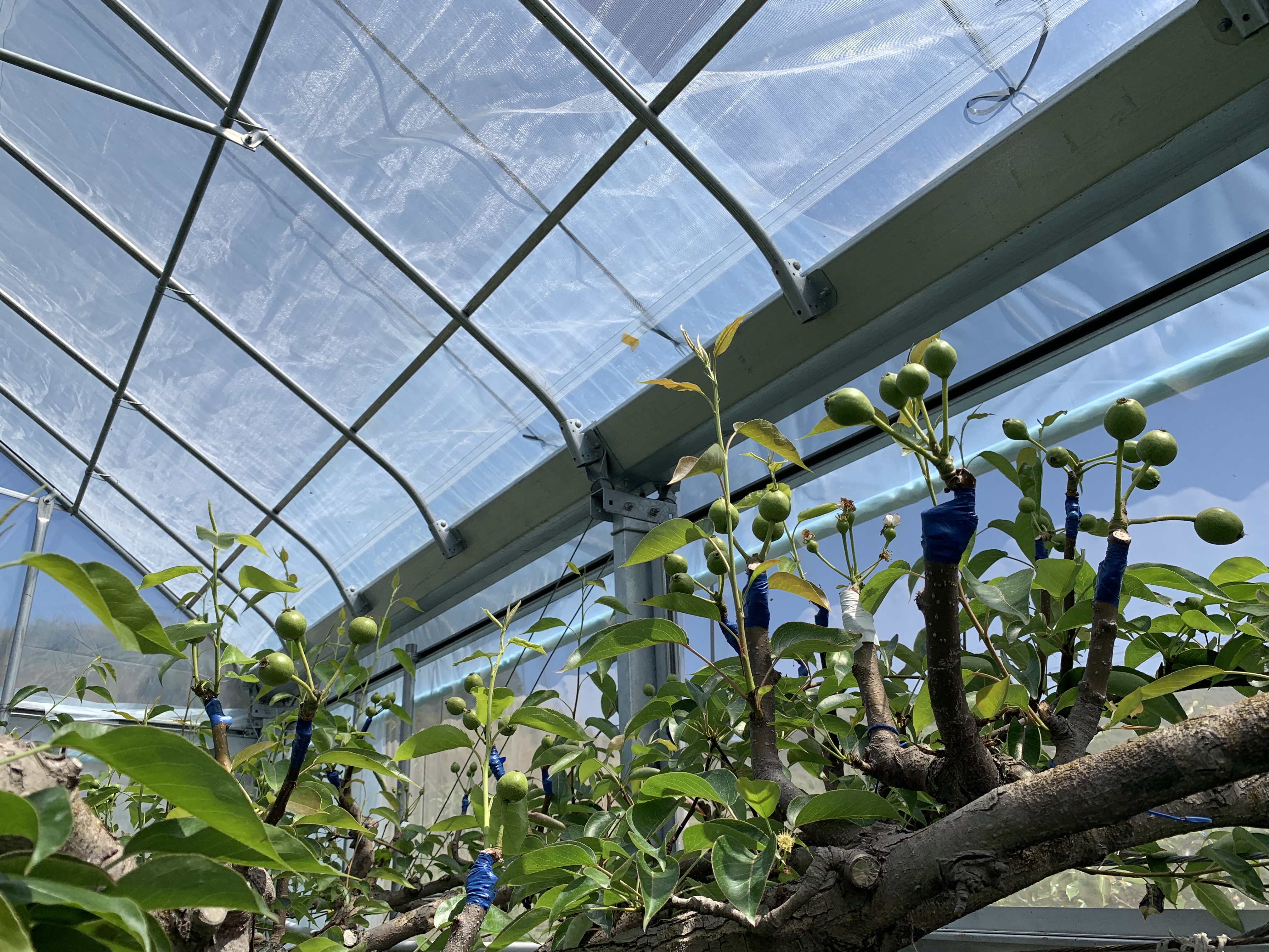 農業局指出,為強化高接梨低溫防護效能,農糧署、東勢區農會及市府去年共同推動「建置高接梨穗防雨設施示範計畫」,輔導東勢區2位梨農興建具屋頂捲揚的簡易式塑膠布溫網室,面積達0.23公頃,並於不同時段完成嫁接,梨穗萌芽正常存活率良好,於低溫來襲時,推廣設施栽培頗具成效。