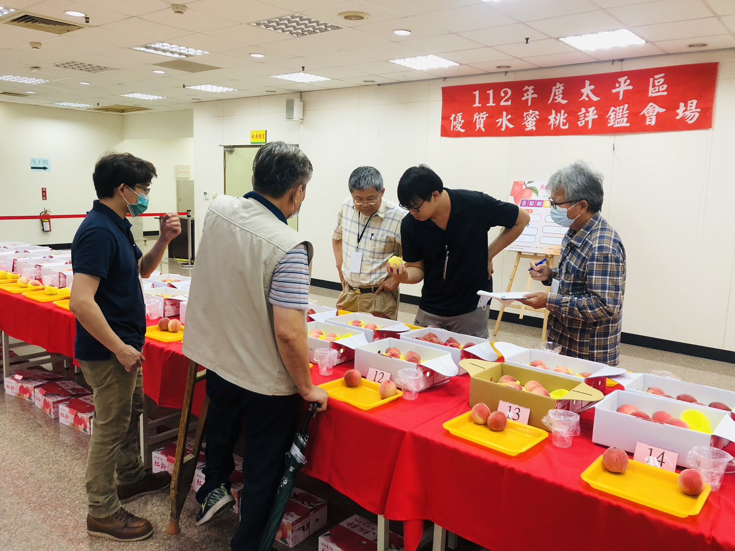 台中市政府農業局輔導太平區農會今(20)日在該會舉辦「112年度台中市太平區優質水蜜桃果品評鑑活動」,推廣台中市優質水蜜桃,提升平地水蜜桃果品品質,這次評鑑計40組農友報名參賽,經評審仔細品嘗評分後,由李香慧勇奪冠軍,成為今年度的平地水蜜桃達人。