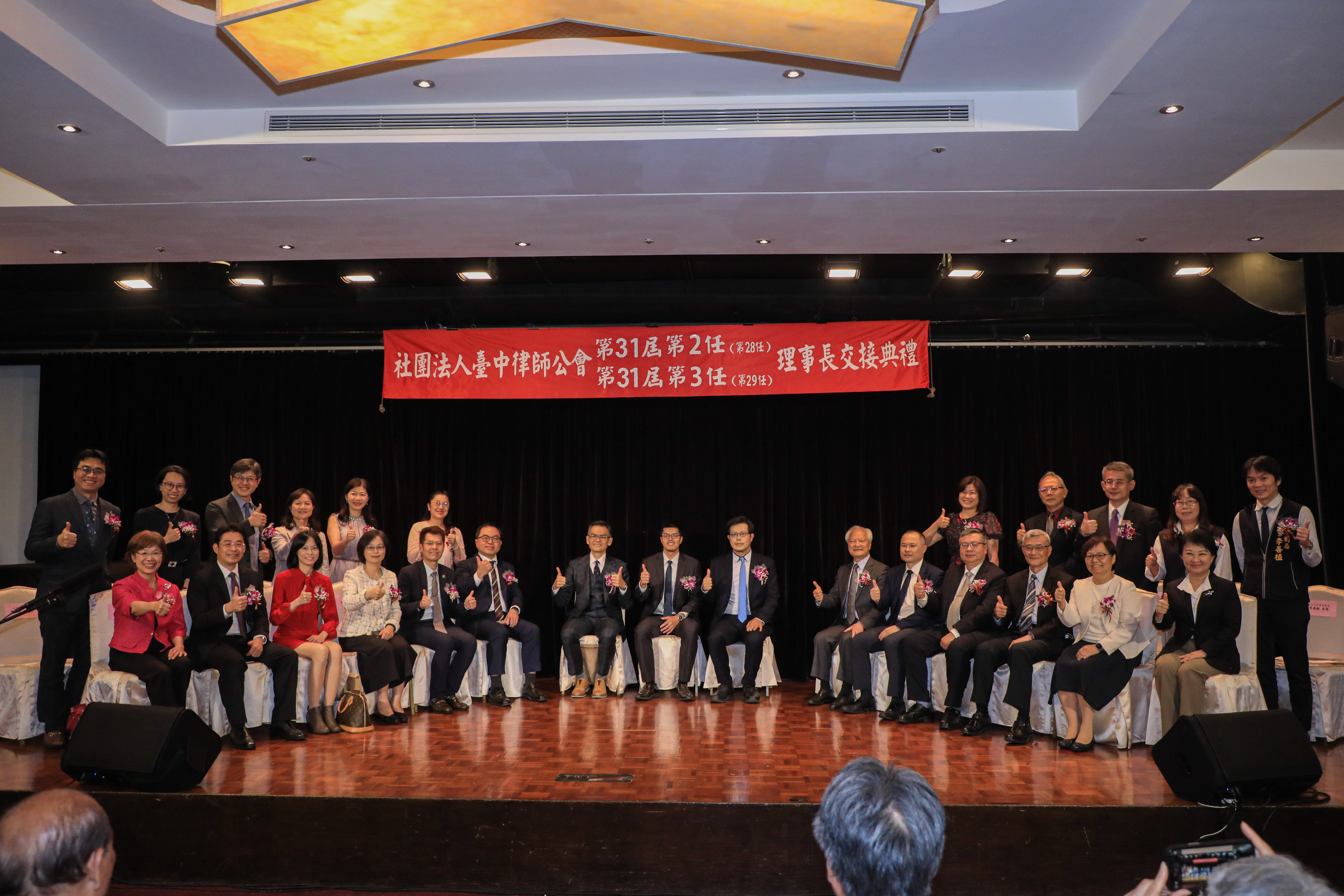 社團法人台中律師公會今(1)晚舉行新、舊任理事長交接典禮,在第31屆第3任常務監事楊宇倢律師監交下,前任理事長楊大德將印信交付新任理事長蘇若龍,盼擴大公會服務格局,持續為民服務。台中市長盧秀燕出席典禮表示,感謝台中律師公會長期以來對市府法律扶助及相關業務的支持與協助,期望在蘇理事長的帶領下持續合作,提供市民優質的法律服務。