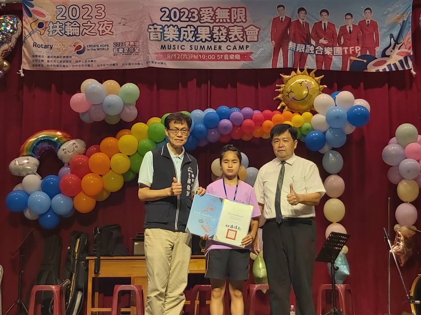教育局說明,2023全國視障生愛無限音樂夏令營由台中市立啟明學校、台中北區扶輪社共同主辦,昨日舉辦音樂成果發表會,指導老師們精心挑選歌曲,帶領學員賞析美國的放克(Funk)爵士樂曲外,並藉由不同老師搭配不同樂器演奏,玩出不一樣的火花,再加上樂器分組教學,讓學員學習運用樂器共同合奏,展現3天的學習成果。