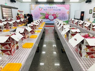 台中市政府農業局維護消費者食用安全、推廣台中市優質農特產品,輔導外埔區農會今(29)日在該會舉辦「112年度台中市優質紅龍果評鑑活動」,支持在地優秀農友,推廣優質紅龍果,計有60組產銷班農民報名參賽,經評審委員仔細品嘗評分後,由外埔區劉興陽勇奪冠軍,成為今年度的紅龍果王。