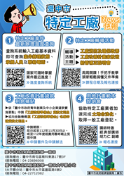 經發局指出,輔導未登記工廠辦理特定工廠登記共分為三個階段,為「納管申請、工廠改善計畫及取得特定工廠登記」,特定工廠後續可進一步申請用地變更取得一般工廠登記,目前台中申請數量均居全國之冠,共受理8,376件未登記工廠納管申請,均已審理完畢,尚有701件待業者補正,預計9月底前全面完成准駁。