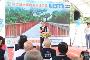 筏子溪作為台中高鐵門戶第一站,為串聯水岸廊道空缺段並完善行人及自行車動線,水利局投入3,000萬辦理「筏子溪門戶迎賓水岸廊道下游串連工程」,工程已於今年9月完工,今(6)日舉辦啟用典禮。副市長黃國榮代表市長盧秀燕出席,強調串聯工程縫合上游魚市場延伸至下游烏日近4公里的藍帶空間,提升當地觀光休憩品質。