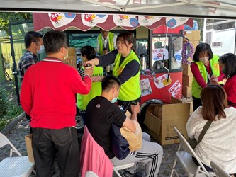 環保局也說,議員賴義鍠今日也到北屯區隊捐血活動現場支持關心隊員,並表示自己有多年定期捐血習慣,特邀請台中天元扶輪社至現場,提供現泡熱防彈咖啡及小點心慰勞挽袖捐血隊員,並搭配區隊回收再利用餐車發放點心。